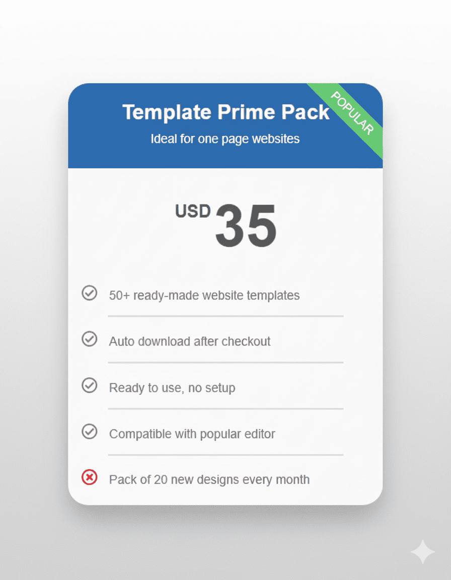Take your website design to the next level with our Template Prime Pack, featuring 50+ professionally crafted website templates β ready to use and instantly available after checkout. Designed for speed, performance, and flexibility, this pack is perfect for businesses and creators who want beautiful websites without technical complexity.